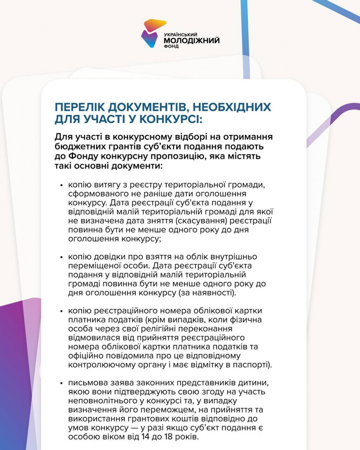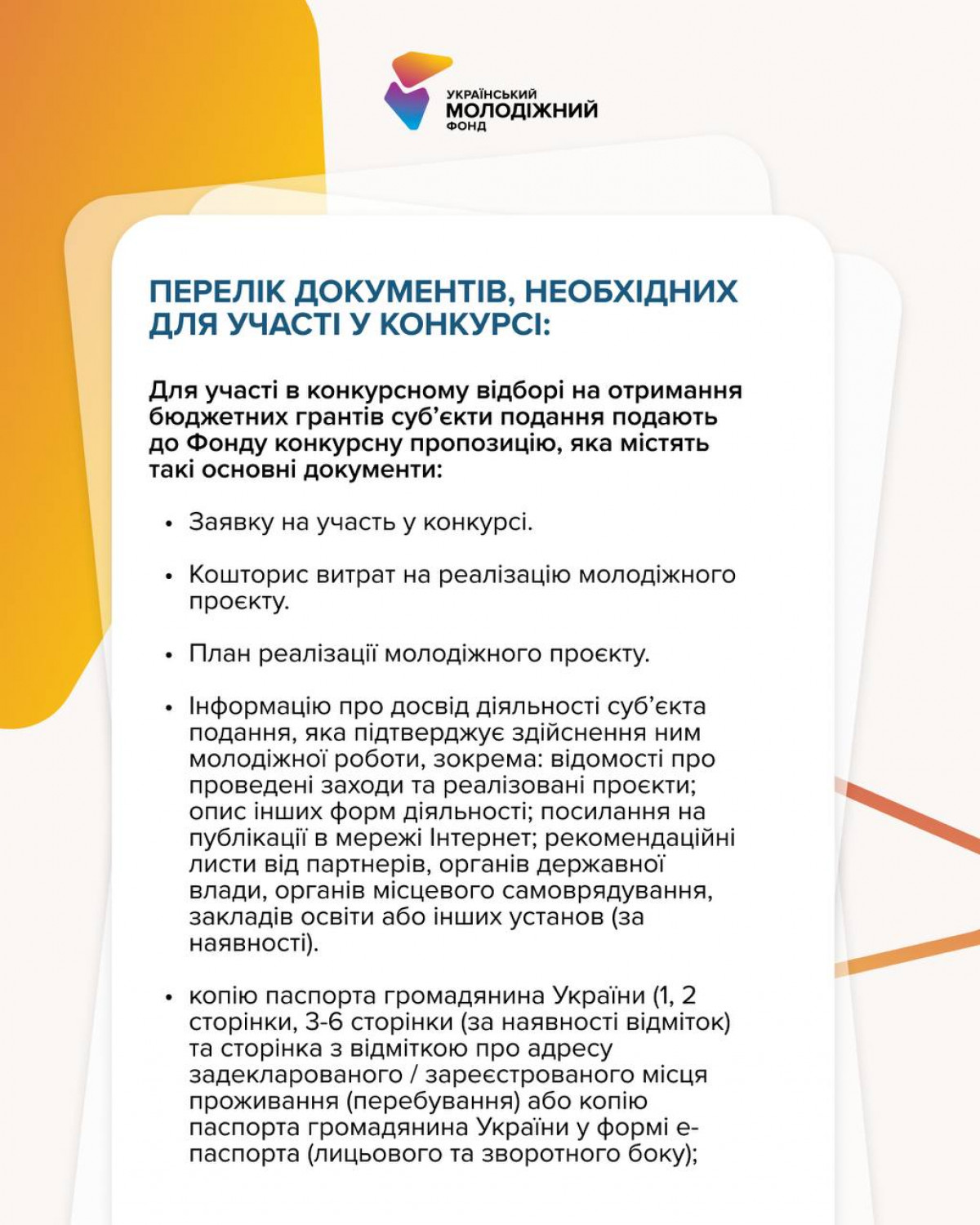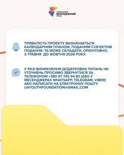 Освітні, культурні, екологічні, волонтерські, соціальні, інклюзивні та безпекові ініціативи – Український молодіжний фонд підтримає все, що зробить громаду сильнішою, активнішою та стійкішою.