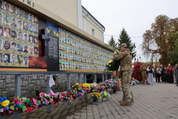 Сьогодні, 1 жовтня, біля пам’ятного фотостенду «Герої Небесної Сотні – Загинули за Єдність України» у центрі Луцька зібралась волинська громада, аби відзначити День захисників і захисниць України та подякувати живим – перед обличчями тепер уже небесних воїнів.