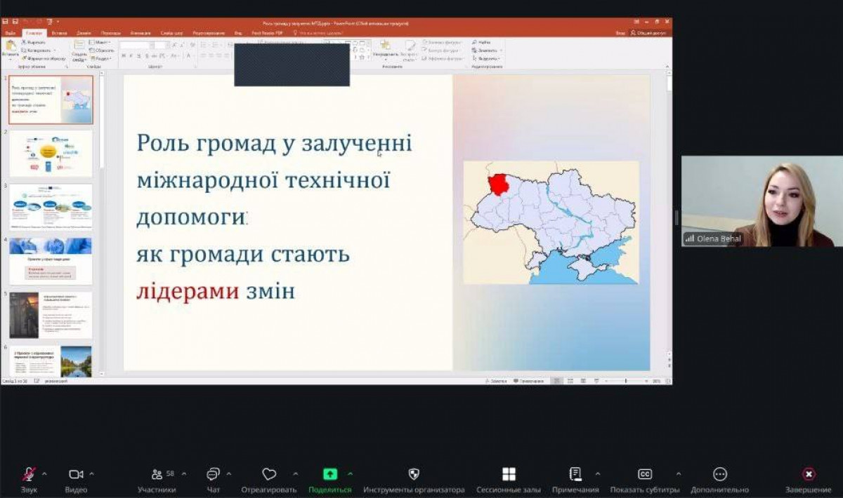 Головний спеціаліст відділу міжнародної технічної допомоги управління Ірина Єзерська детально представила ефективні методи та інструменти пошуку партнерів з розвитку. Учасники ознайомилися з практичними аспектами використання міжнародних платформ співпраці, а також з вимогами щодо подачі проєктних пропозиції в рамках Програми «Кусаноне».