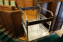 Станом на сьогодні вже встановлені два підйомники – один до сесійного залу, інший безпосередньо в його приміщенні. Це дасть змогу людям, які пересуваються на кріслах колісних, безперешкодно брати участь у сесійних засіданнях та інших заходах. Роботу підйомників протестували в дії, технічні можливості перевірили фахівці управління містобудування та архітектури облдержадміністрації спільно з працівниками обласної ради.