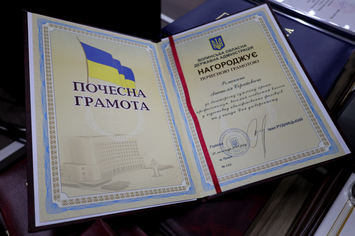З нагоди ювілею та за багаторічну сумлінну працю, високий професіоналізм і вагомий особистий внесок у підготовку кваліфікованих фахівців працівників університету було відзначено Почесними грамотами Волинської обласної державної адміністрації: