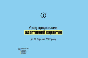 Кабінет Міністрів України продовжив дію адаптивного карантину на території України до 31 березня 2022 року.