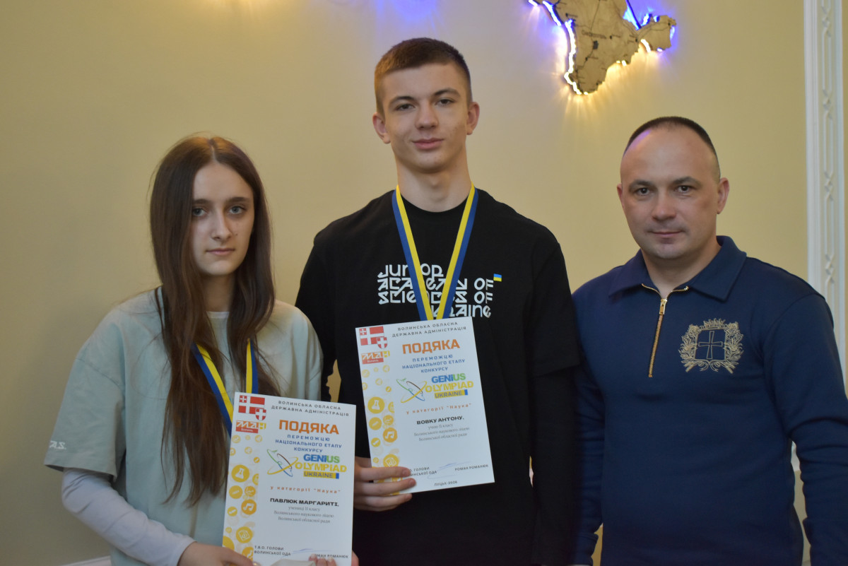 Т.в.о. начальника ОВА відзначив волинських переможців Національного етапу міжнародної екологічної олімпіади GENIUS Olympiad Ukraine Сьогодні у стінах Волинської обласної військової адміністрації відб