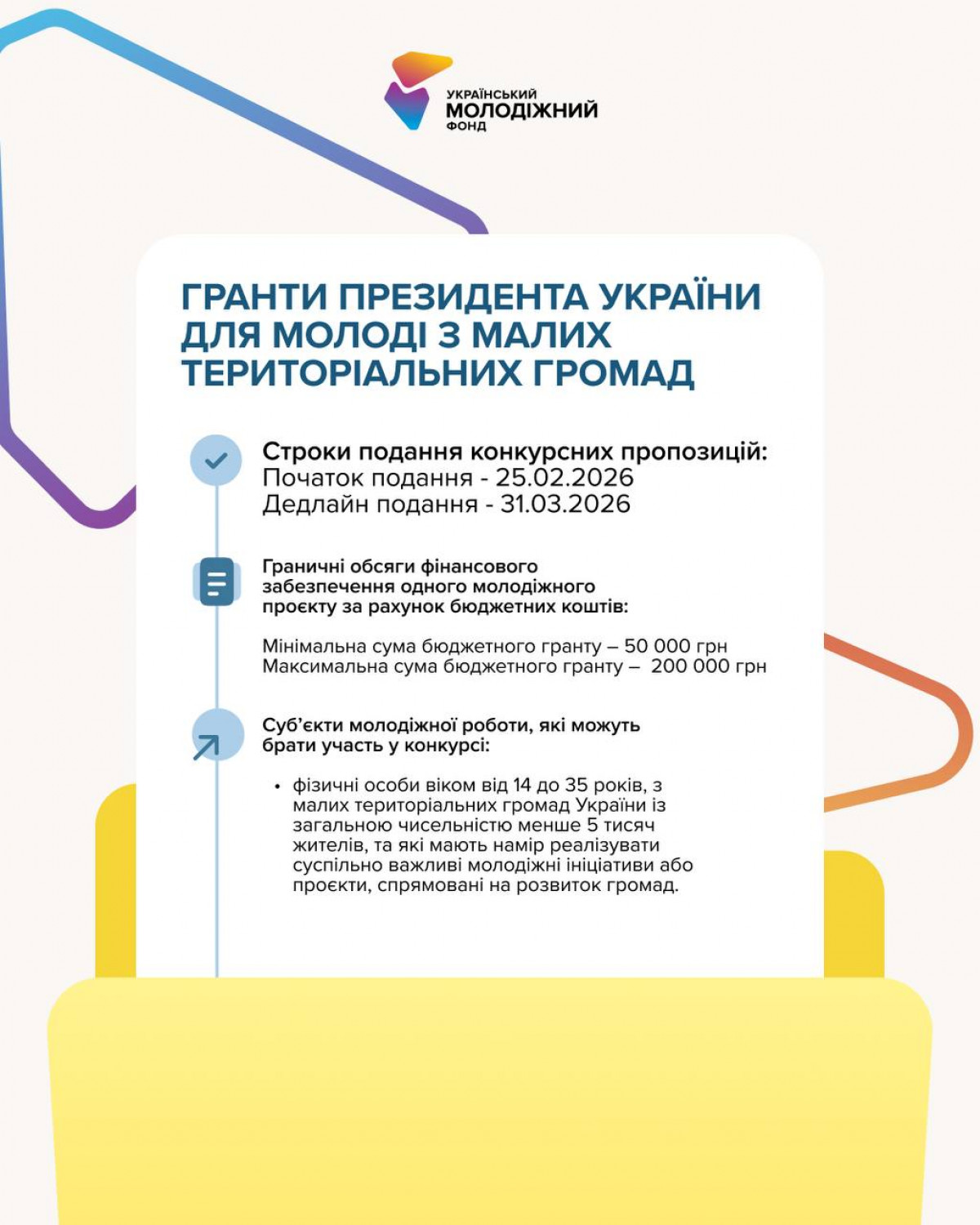 💰 Сума гранту: від 50 000 до 200 000 грн.