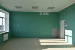 Наразі майстри завершують зовнішні та внутрішні ремонтні роботи на об’єкті. Всередині будівлі уже пофарбовані стіни, встановлена вентиляційна система, а у класах, де влаштована дерев’яна підлога, майстри шліфують її поверхню. На черзі – проведення внутрішніх робіт у спортивному залі.