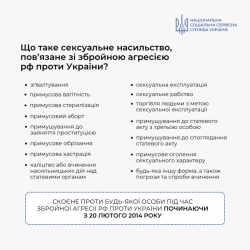 Сьогодні у світі відзначається Міжнародний день боротьби з сексуальним насильством в умовах конфлікту. Особи, які зазнали насильства, пов’язаного із збройною агресією рф мають право на отримання правового і соціального захисту від держави.
