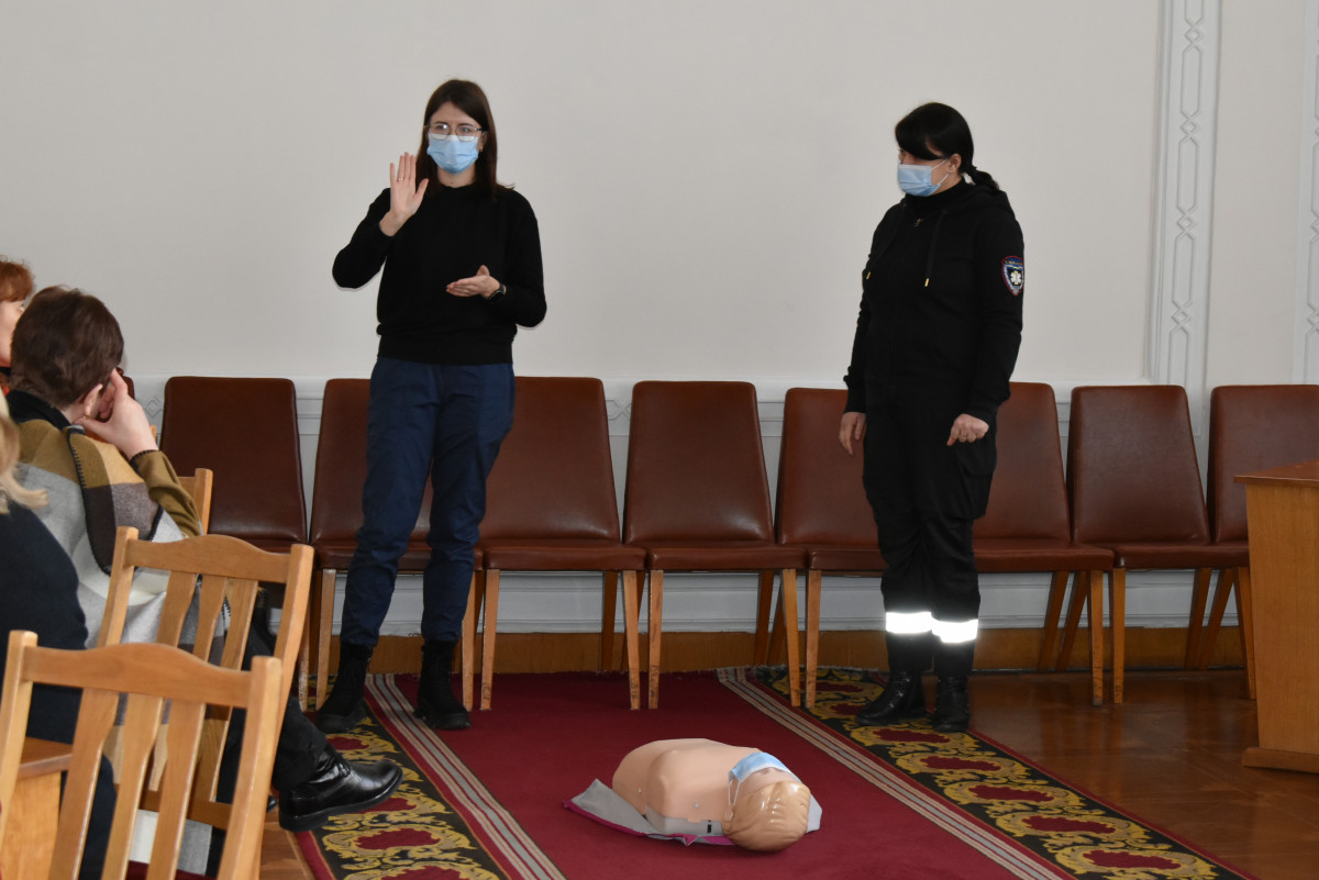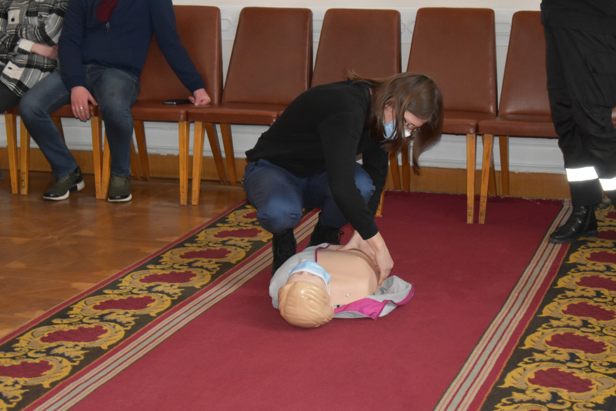 Працівника ОДА мали можливість на практиці навчитись робити базові медичні дії у випадку тих чи інших найпоширеніших критичних ситуацій, зокрема штучне дихання та непрямий масаж серця.