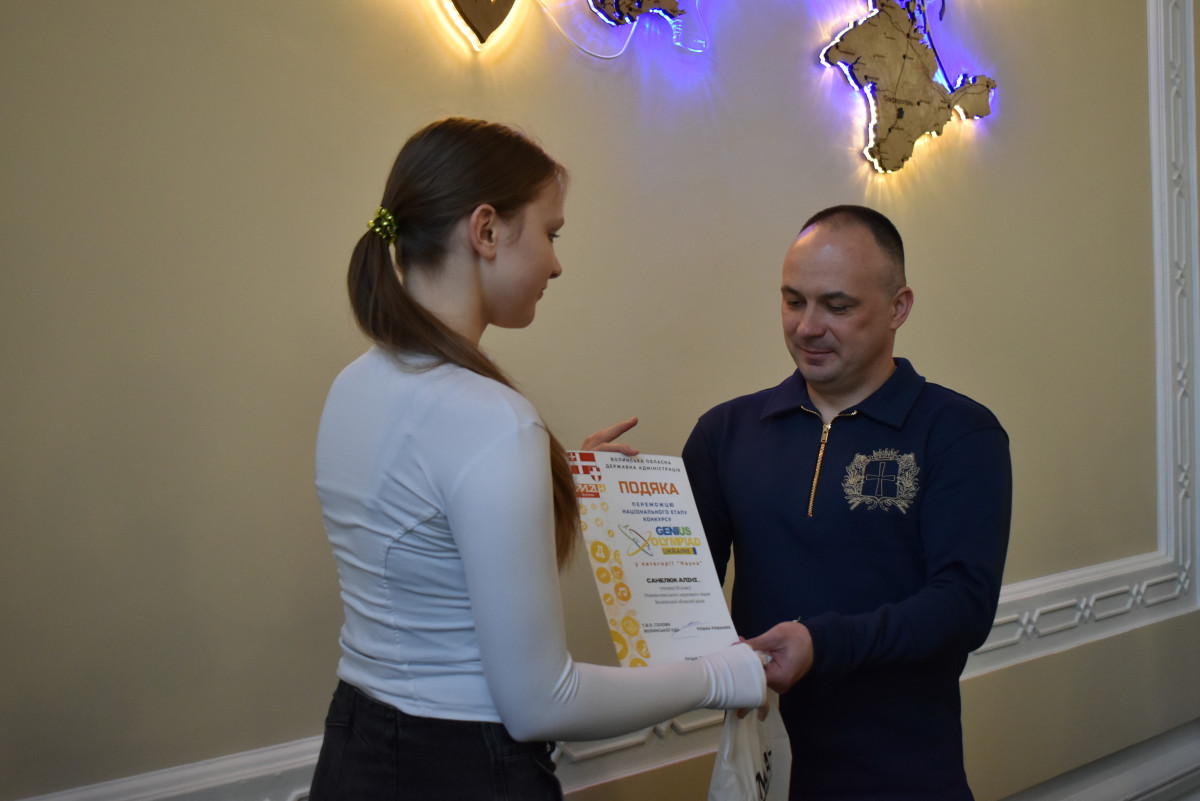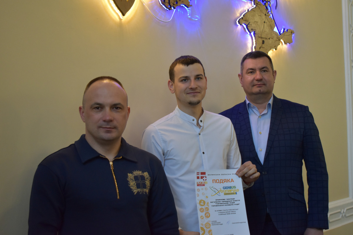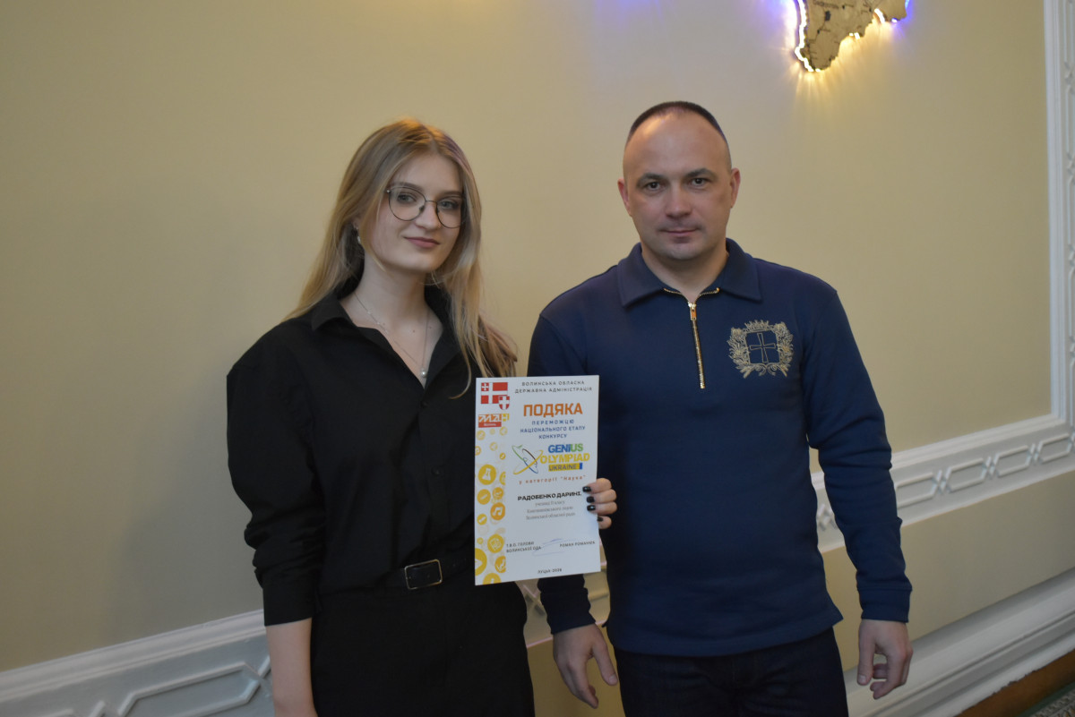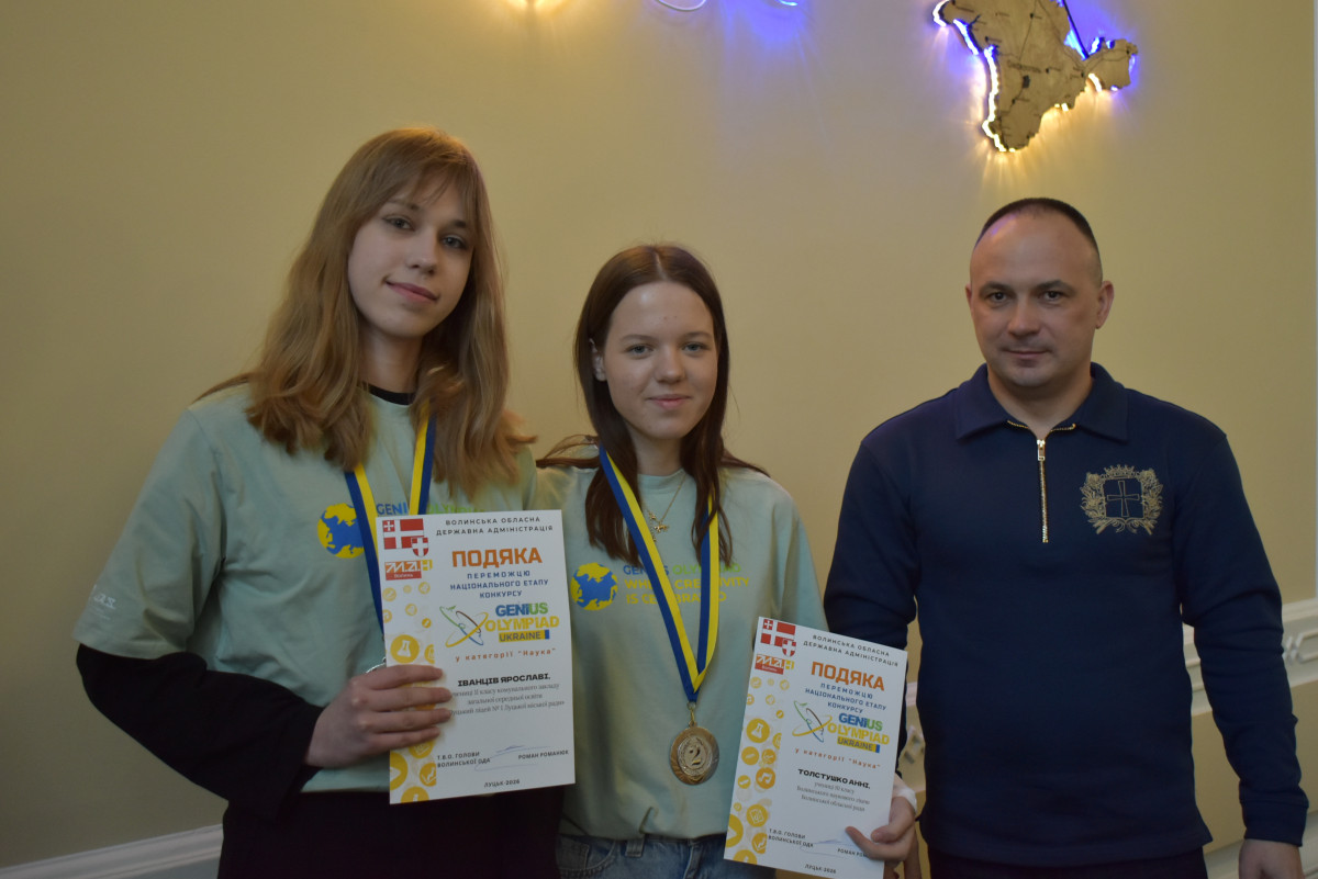 У стінах Волинської обласної військової адміністрації відбулось урочисте нагородження волинських школярів – переможців Національного етапу міжнародної екологічної олімпіади GENIUS Olympiad Ukraine. Привітали та відзначили юних науковців т.в.о. начальника Волинської ОВА Роман Романюк разом із головою Волинської обласної ради Григорієм Недопадом.