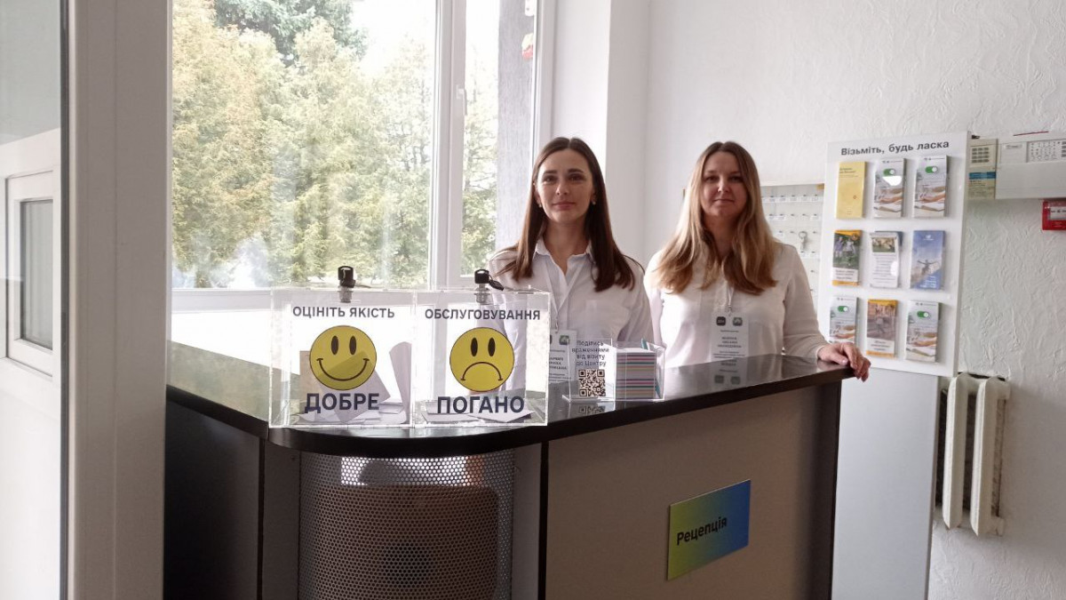 У ЦНАПі обладнане місце для самообслуговування, зона очікування, дитячий куточок, кімната персоналу, робочі місця для персоналу та місце, де можна оцінити якість обслуговування.