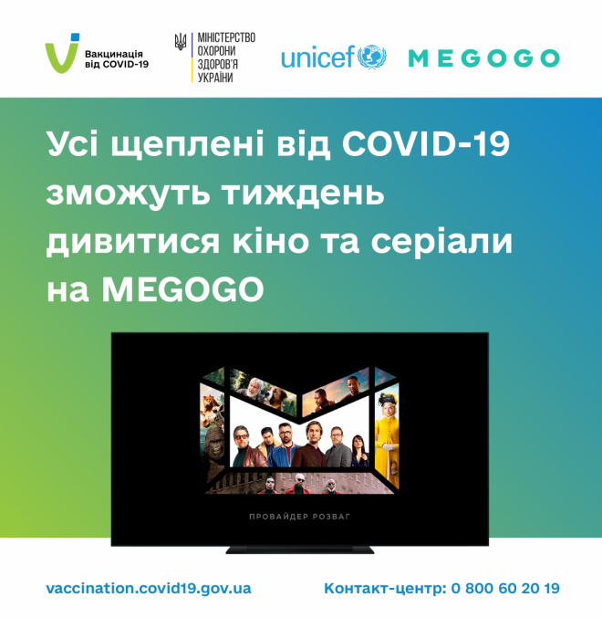 Шукайте на плакатах у центрах та пунктах вакцинації промокод від MEGOGO