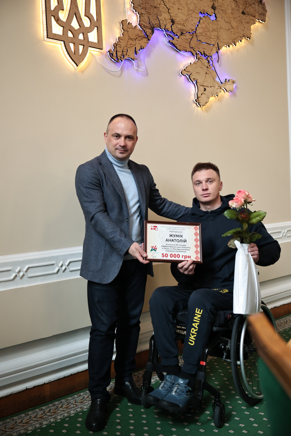 Сьогодні т.в.о. начальника Волинської ОВА Роман Романюк спільно з головою обласної ради Григорієм Недопадом зустрілись з учасниками ХІV зимових Паралімпійських ігор 2026 року, які представляли область у складі національної збірної України.