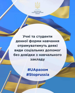 Мінсоцполітики вважає за необхідне на час дії воєнного стану плюс 60 днів після його завершення без довідки з навчального закладу призначати та продовжувати виплату деяких видів соціальних допомог дітям віком від 18 до 23 років, батьки (годувальники) яких загинули, і які навчаються за денною формою навчання у загальноосвітніх навчальних закладах, професійно-технічних та вищих навчальних закладах.