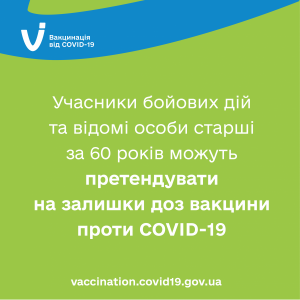 Публічні та громадські діячі, учасники бойових дій та відомі особи старші за 60 років у Волинської області можуть претендувати на залишки доз вакцин проти COVID-19.