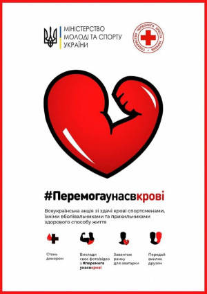 Напередодні Всесвітнього дня донора крові, що відзначатиметься 14 червня, Міністерство молоді та спорту України підтримало ініціативу Товариства Червоного Хреста України і комунікаційної агенції Ogilvy Україна, та започатковує всеукраїнський благодійний марафон «Перемога у нас в крові» (за хештегом #Перемогаунасвкрові).